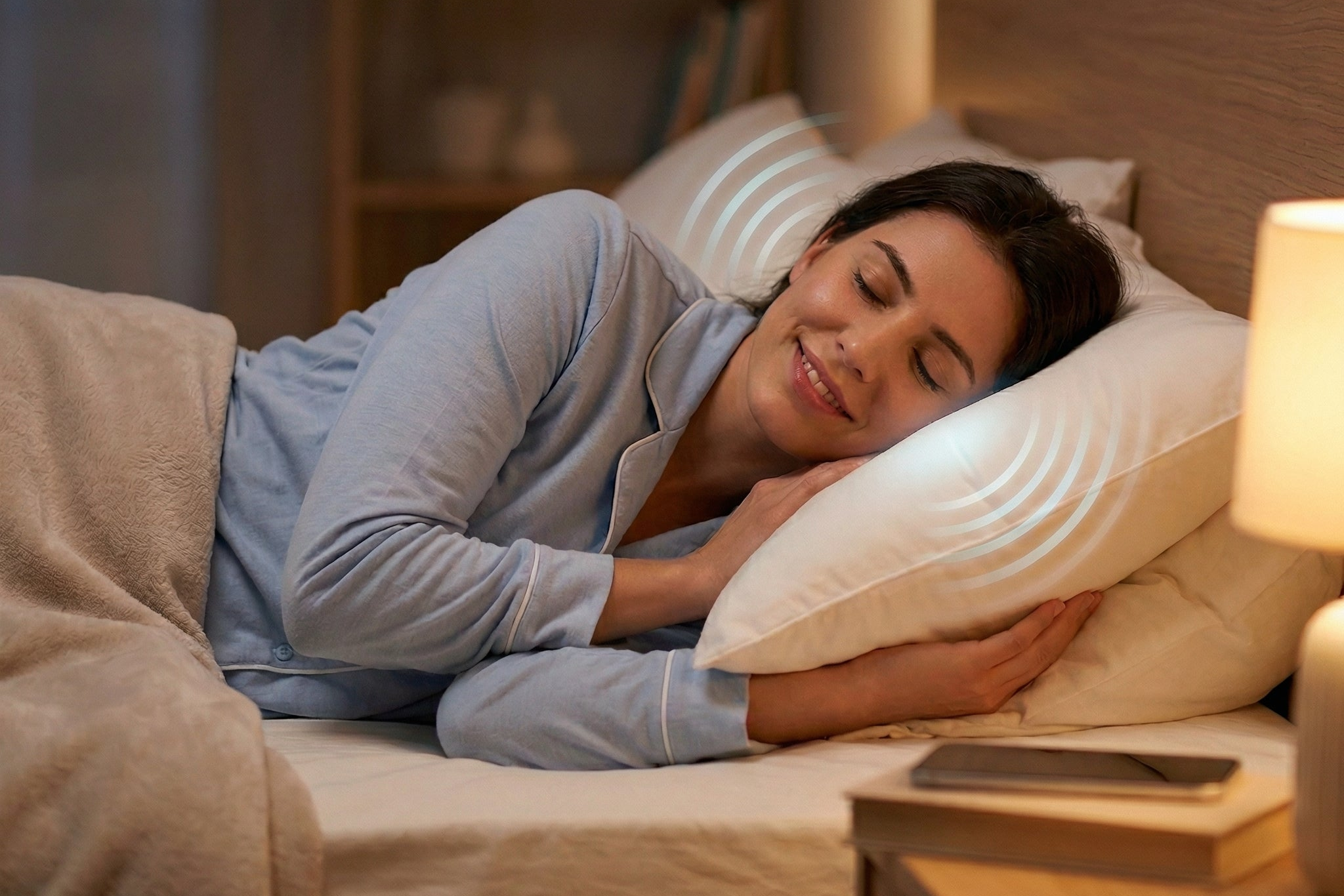 🎵 Audio → 🛏️ Pillow → ✨ Gentle Vibrations → 👂 Inner Ear